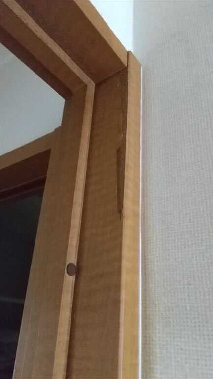 こちらの現場では、各所の建具枠の表面材が部分的に剥がれてしまっている状態でした。