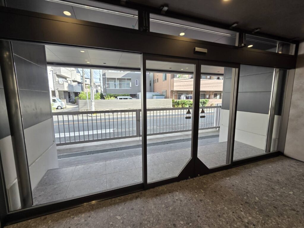 ビルの正面に位置する自動ドアは、日中長時間にわたり直射日光を浴び続けるため、通常のシートでは劣化が早く、色あせや剥がれの原因になります。