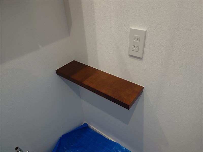 施工にあたっては、周囲の壁やコンセント類を傷つけないようしっかりと養生を施し、下地処理後に丁寧にシート貼りを行いました。